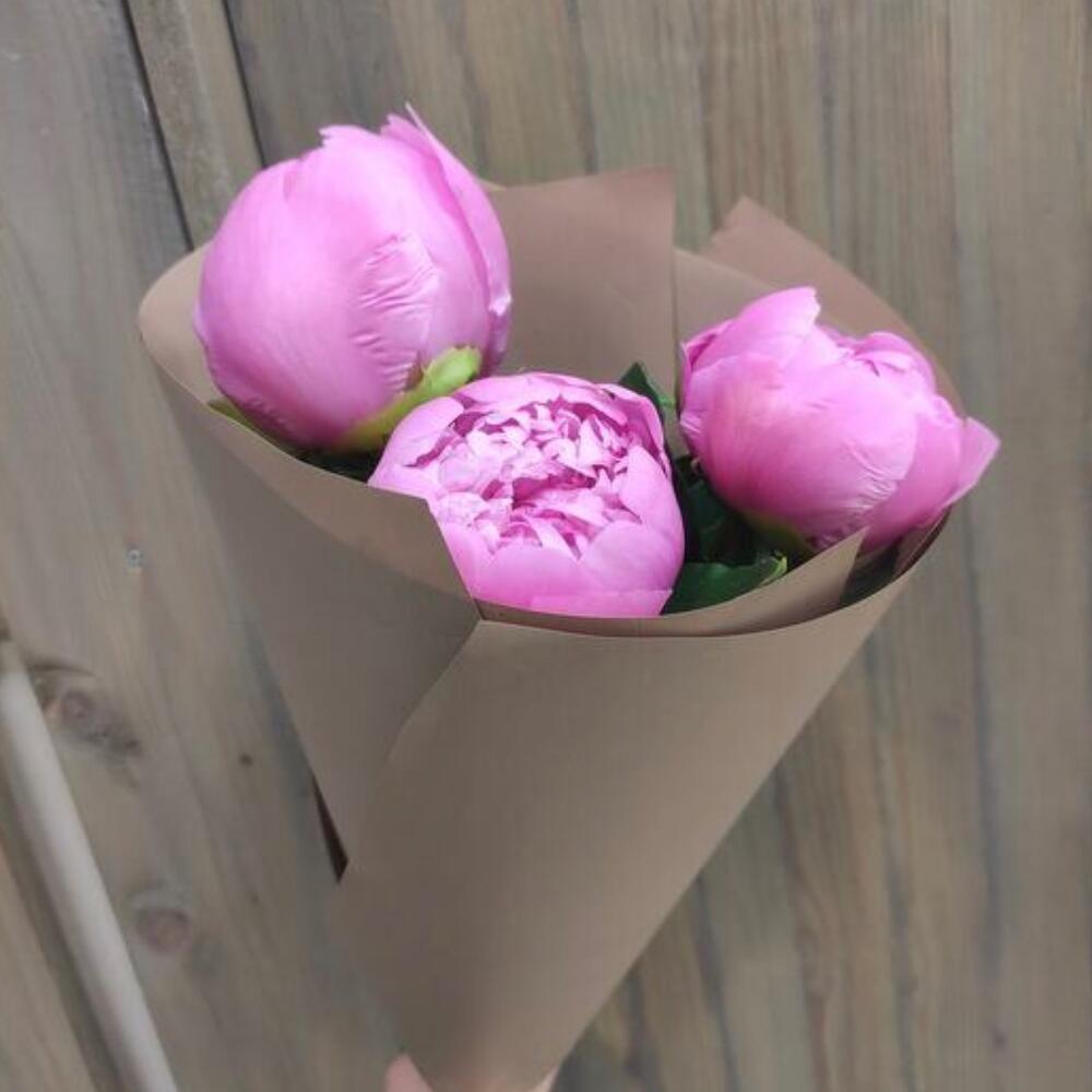 Авторский букет с пионом и пионовидынми розами Пинк охара