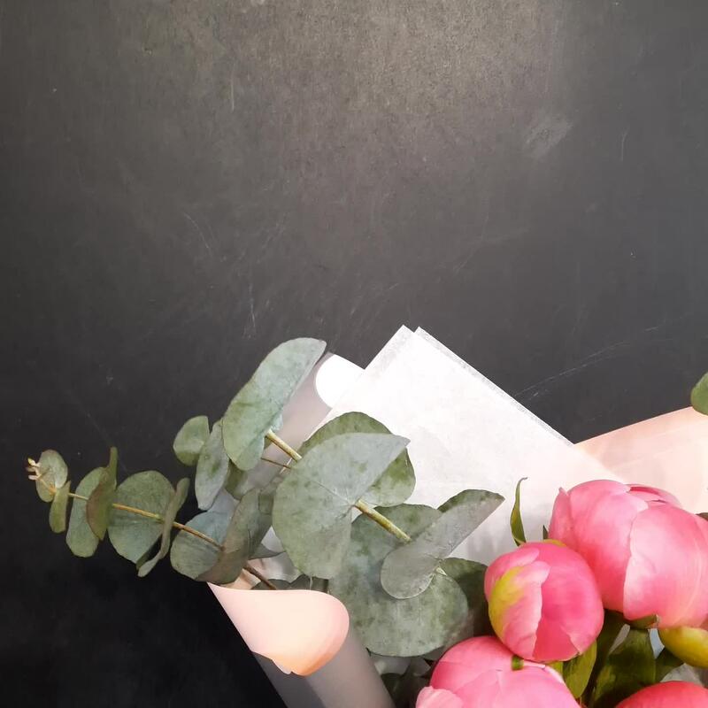 5 пионов с эвкалиптом