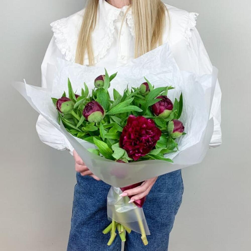 Букет из бордовых пионов Standart 9 шт