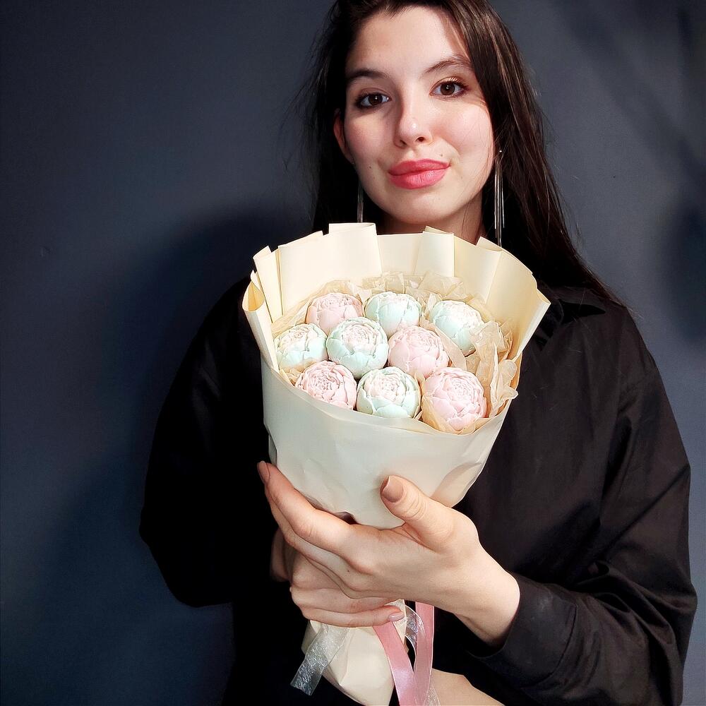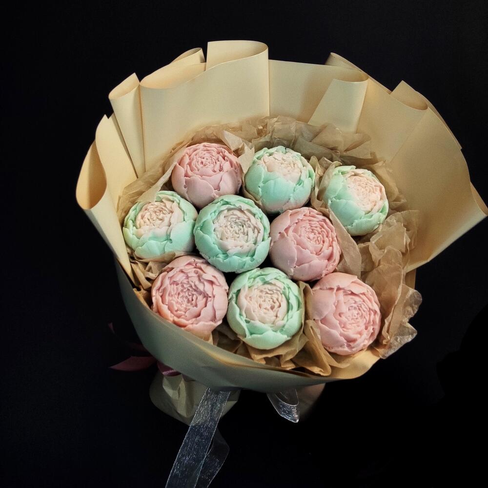 пион из белого бельгийского шоколада – 9 шт.Упаковка дизайнерская – 2 шт.