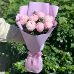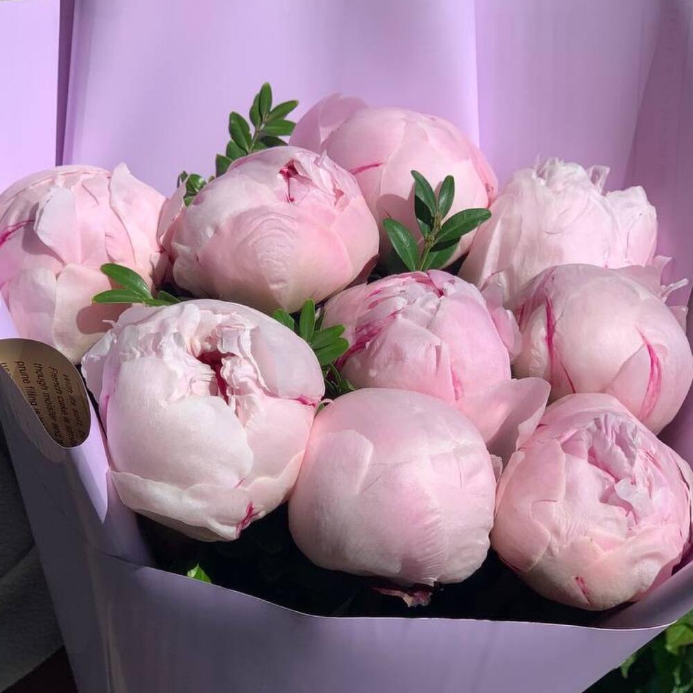 Букет розовых пионов в дизайнерской упаковке 9 шт