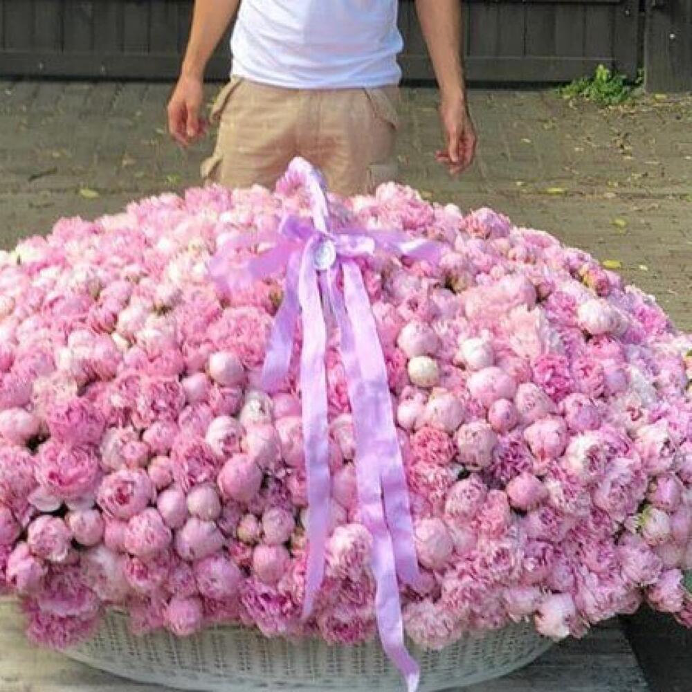 Атласная лента – 1 шт.корзина с оазисом – 1 шт.пионы – 301 шт.