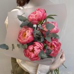 Пион – 5 шт.Эвкалипт – 2 шт.Упаковка дизайнерская – 1 шт.