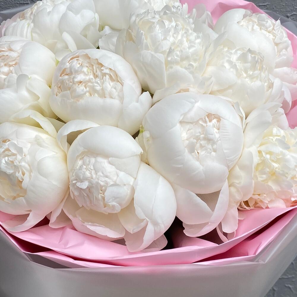 Монобукет с 11 белоснежными пионами премиум
