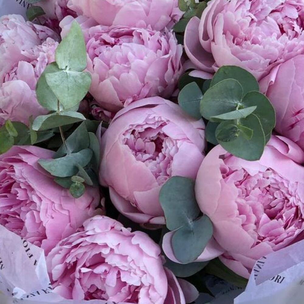 sara bernar пионы – 13 шт.Подарочная упаковка – 1 шт.Эвкалипт – 1 шт.Средство для продления жизни цветов – 1 шт.