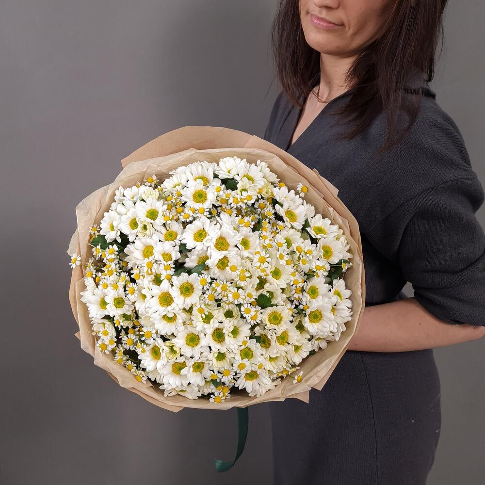 Ромашка кустовая – 13 шт.Аквапак – 1 шт.Сантини Росси Вайт – 12 шт.Упаковка крафт – 1 шт.витамины для цветов – 2 шт.
