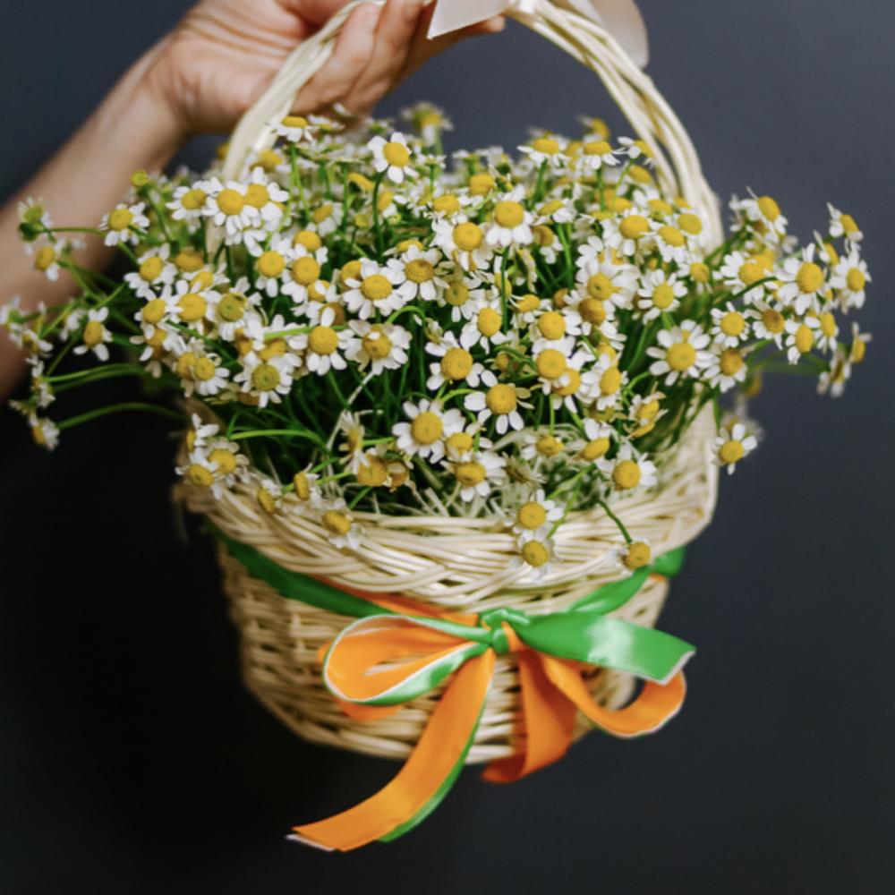 кустовая ромашка матрикария – 25 шт.корзина и декор – 1 шт.