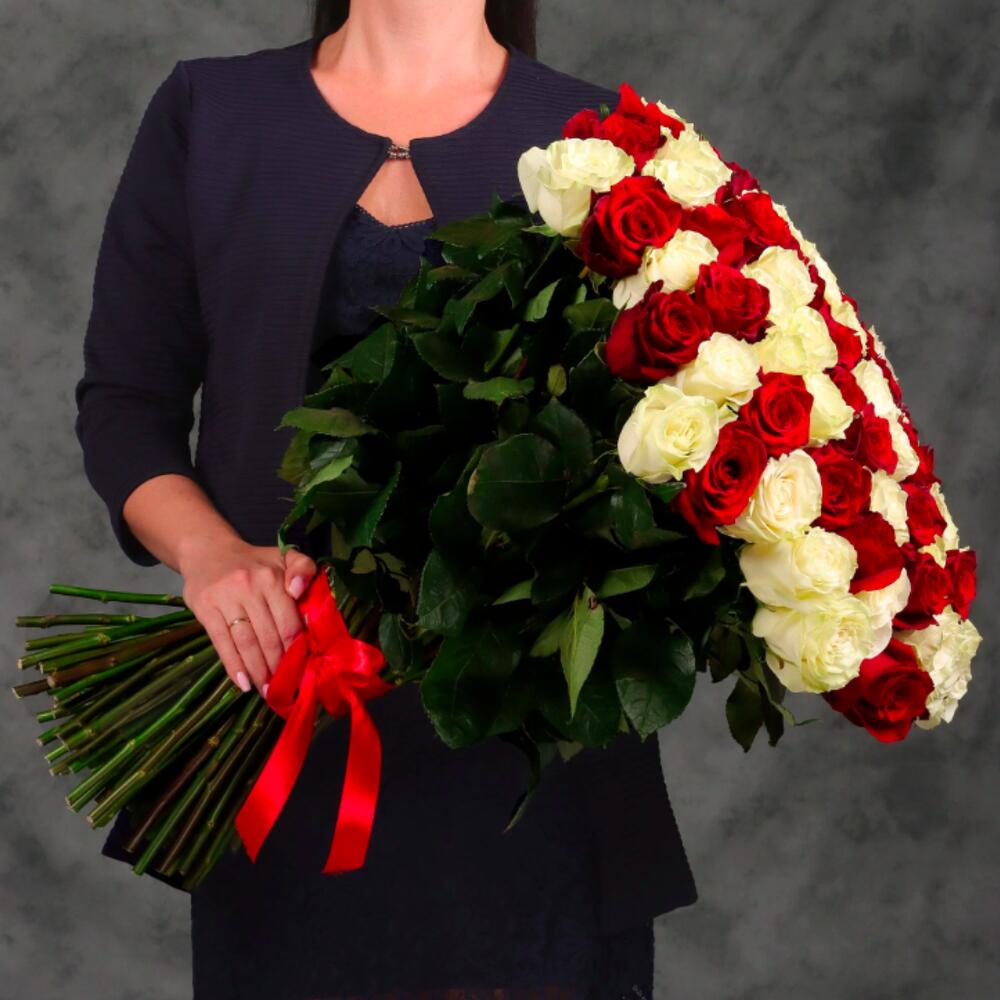 Огромный букет из 101 красной и белой.