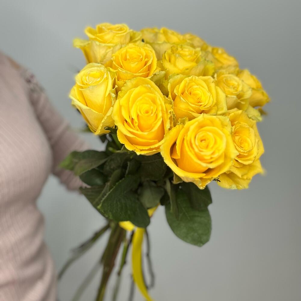 15 желтых роз под ленту (60см)