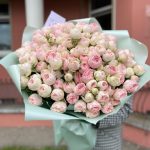 Тишью – 1 шт. Атласная лента – 1 шт. Пионовидная кустовая роза – 35 шт. Дизайнерская упаковка – 1 шт.