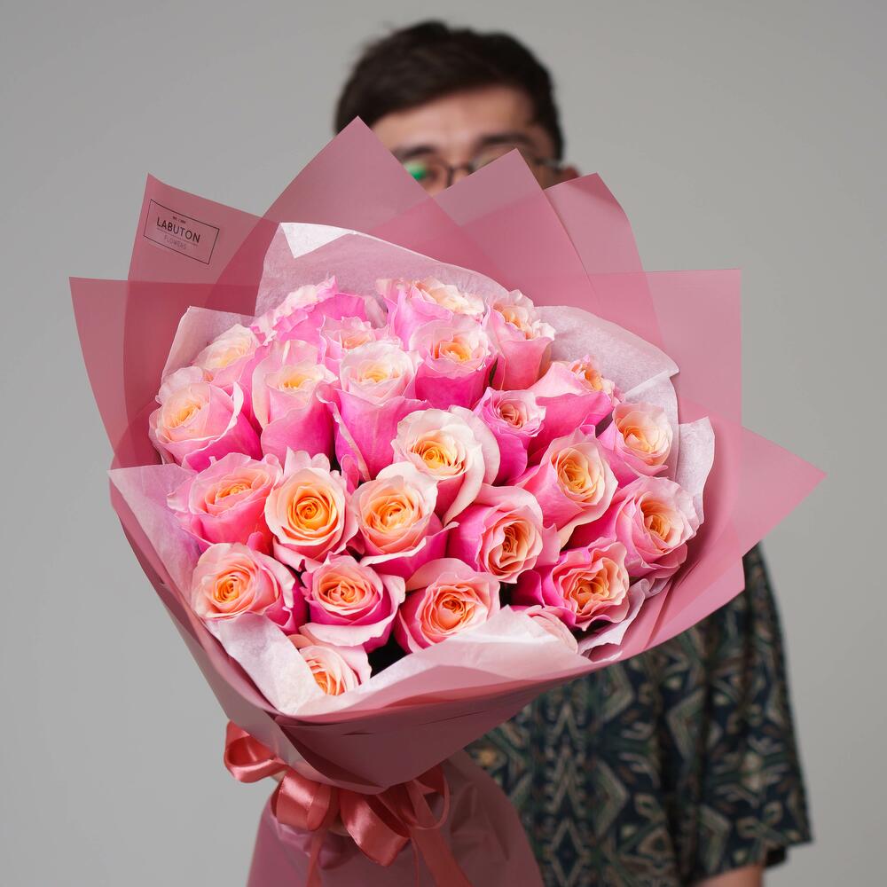 Роза – 25 шт. аквабумага – 1 шт. Атласная лента – 1 шт.