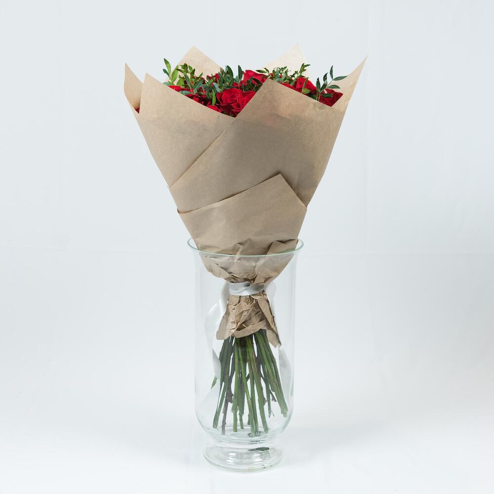 роза explorer – 25 шт.Фисташка – 4 шт.Крафт упаковка – 1 шт.Лента атласная – 1 шт.