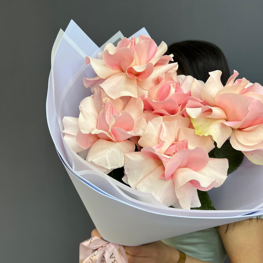 Атласная лента – 1 шт.Французская роза – 5 шт.Дизайнерская упаковка – 1 шт.