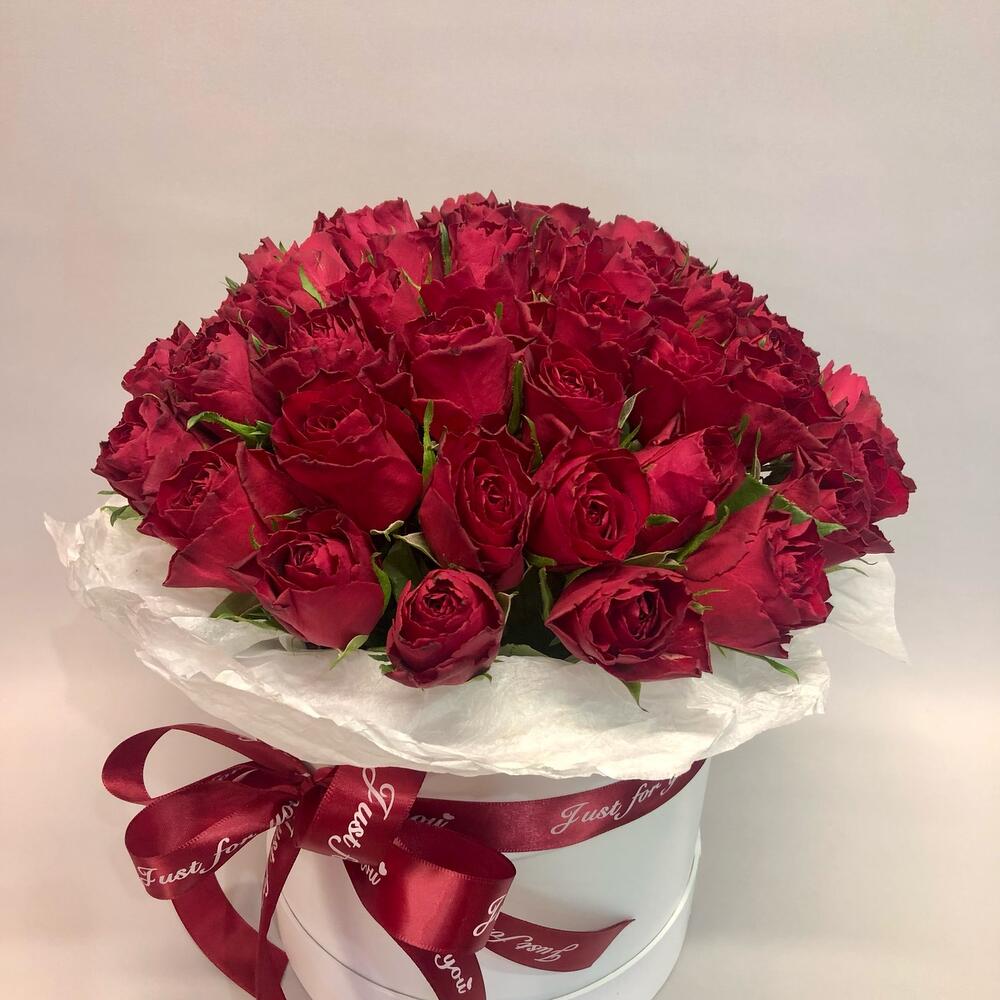 Роза красная Эквадор – 51 шт.Коробка шляпная – 1 шт.