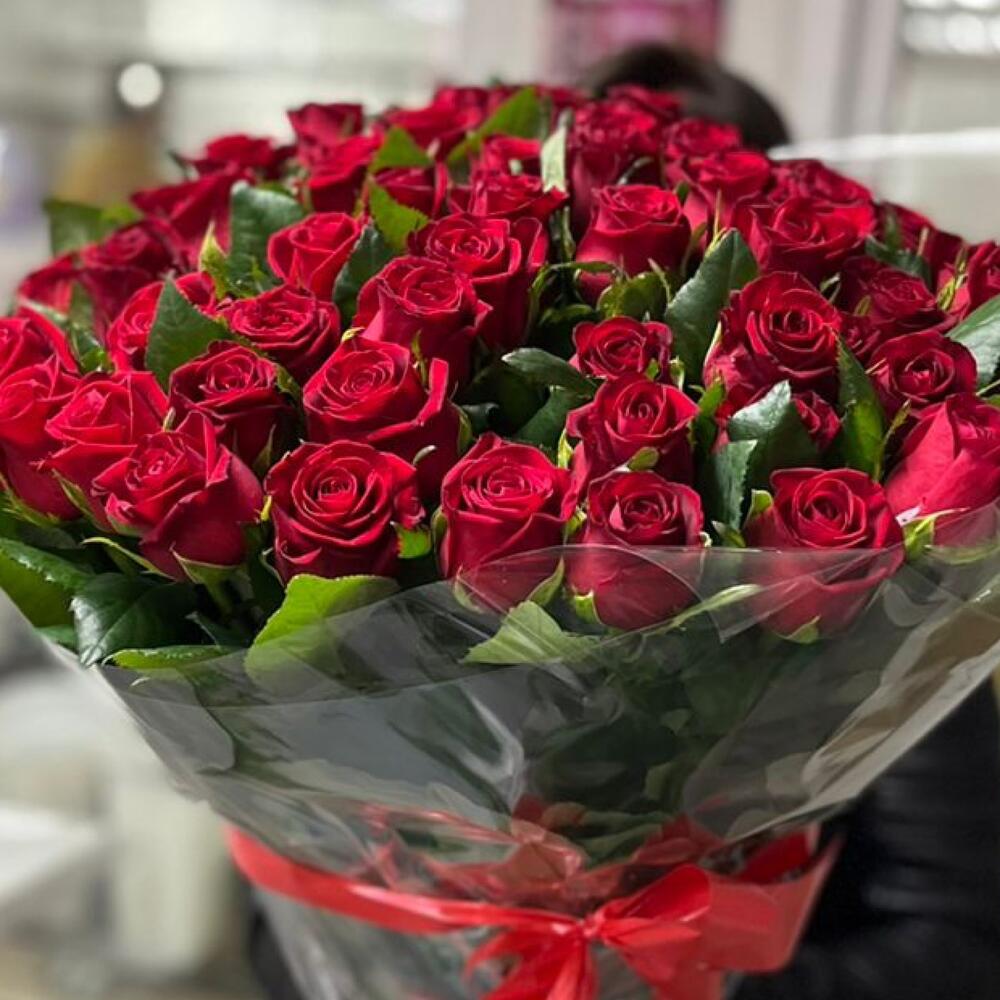 розы 51 штука 70 см – 51 шт.Пленка дизайнерская – 2 шт.Лента атласная – 1 шт.