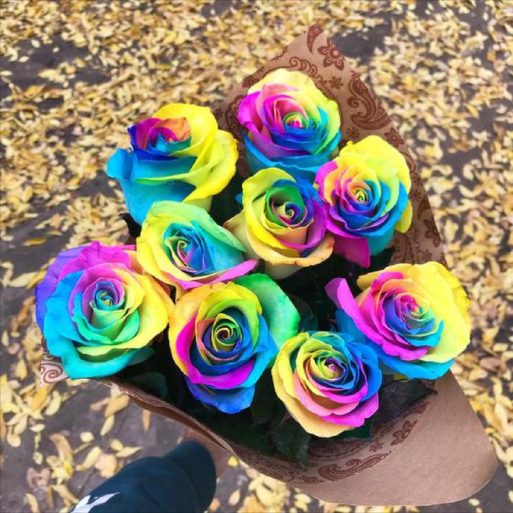 Крафт – 1 шт.Роза радужная – 9 шт.