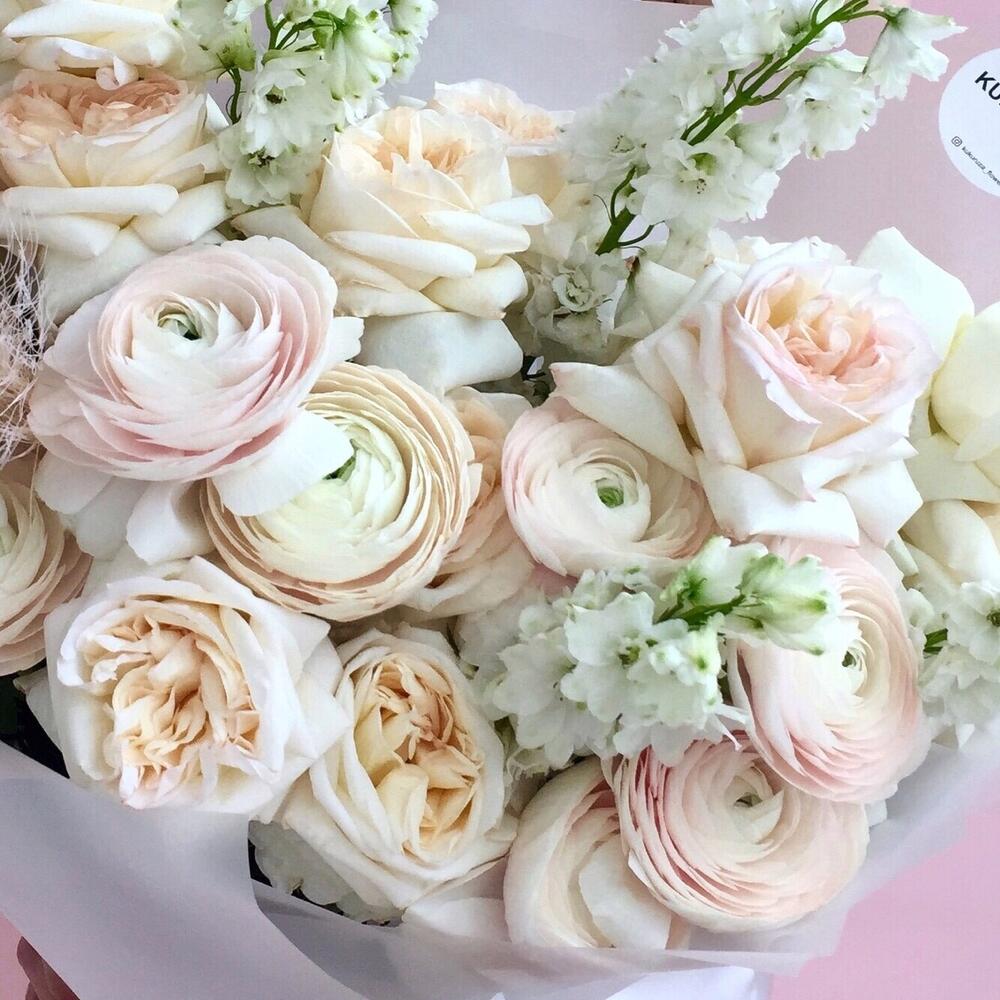 Авторский букет 2. ранункулюс, пион роза, дельфиниум