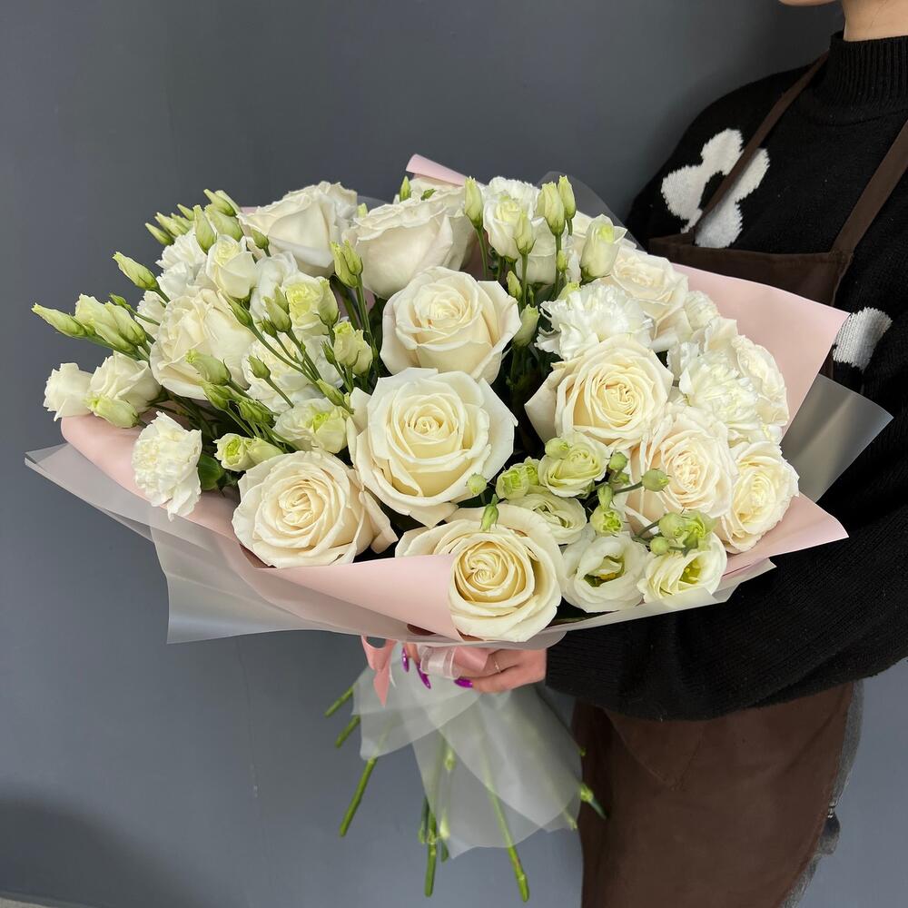 Категории: Гвоздики, Лизиантусы, Пионовидные розы, Розы