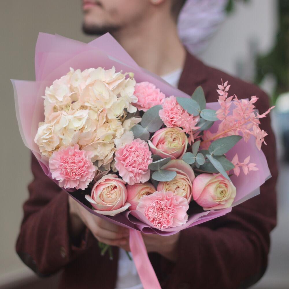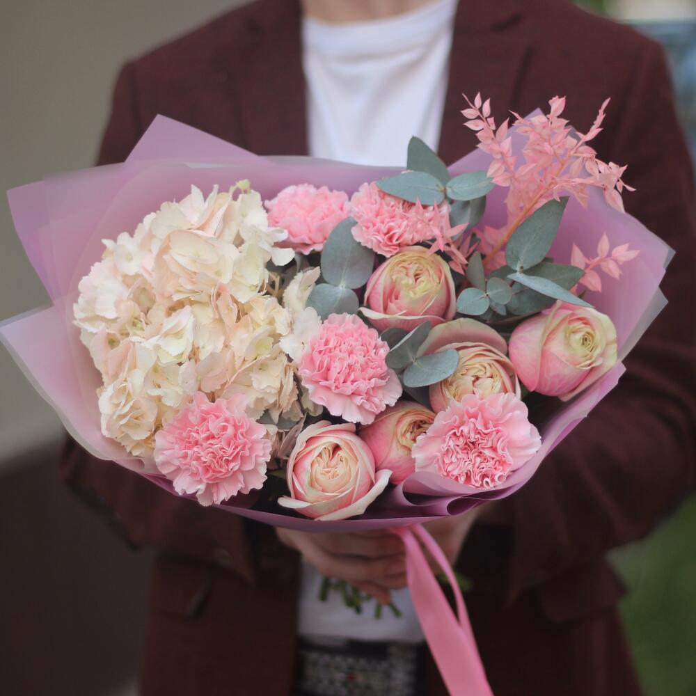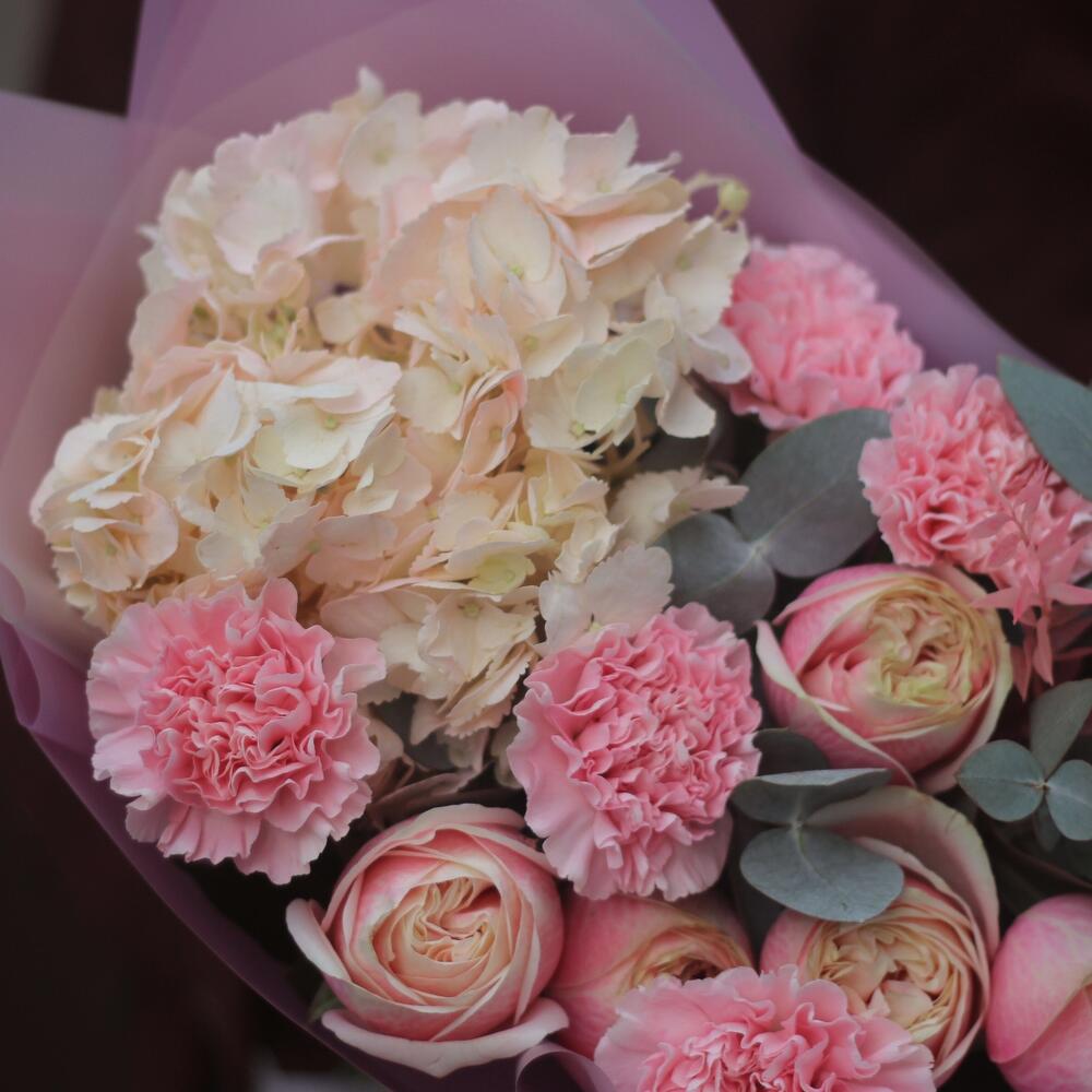 Категории: Гвоздики, Гортензии, Пионовидные розы, Розы