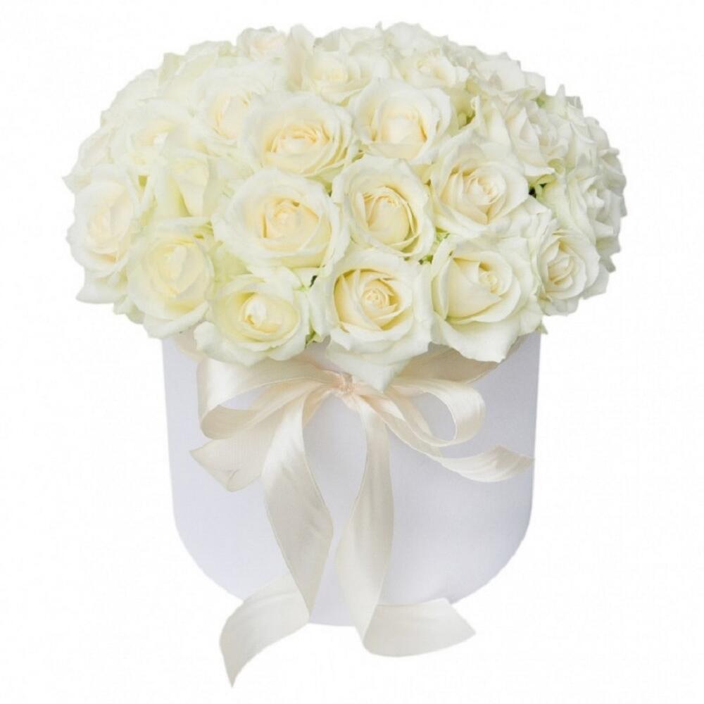 Шляпная коробка – 1 шт.Оазис флористический – 1 шт.Пленка – 1 шт.Лента атласная – 1 шт.Роза – 25 шт.