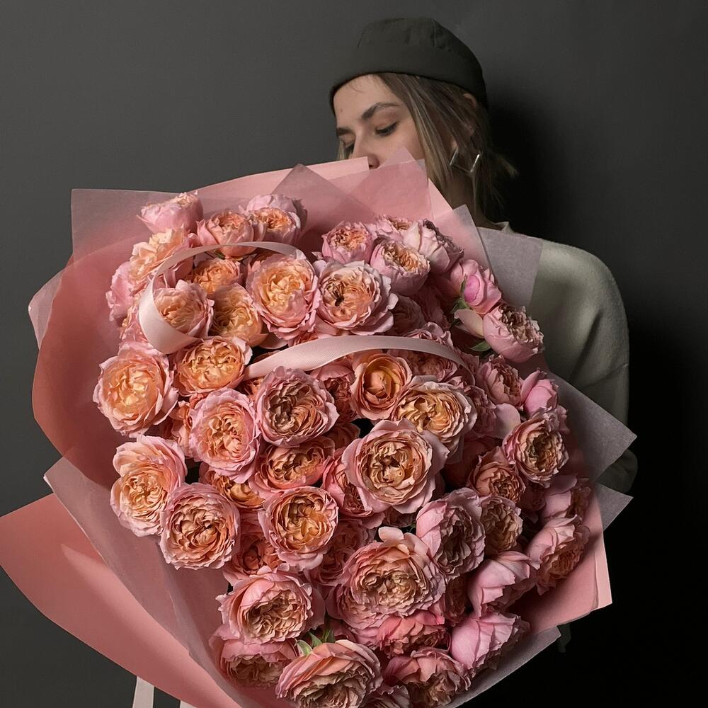 Нежный букет кустовых пионовидных роз