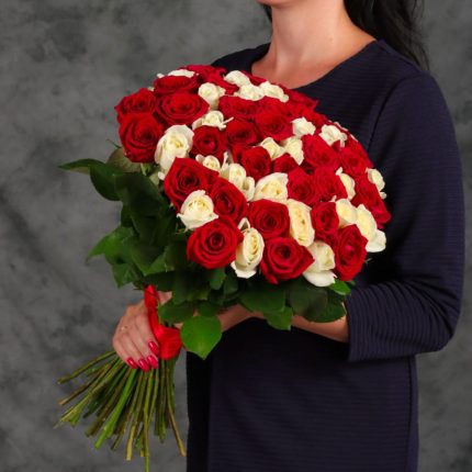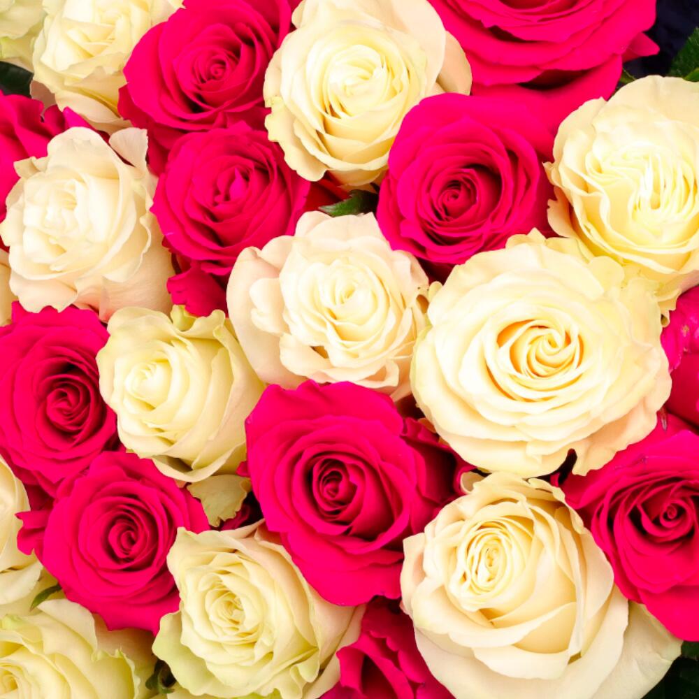 Букет 35 белых и розовых роз