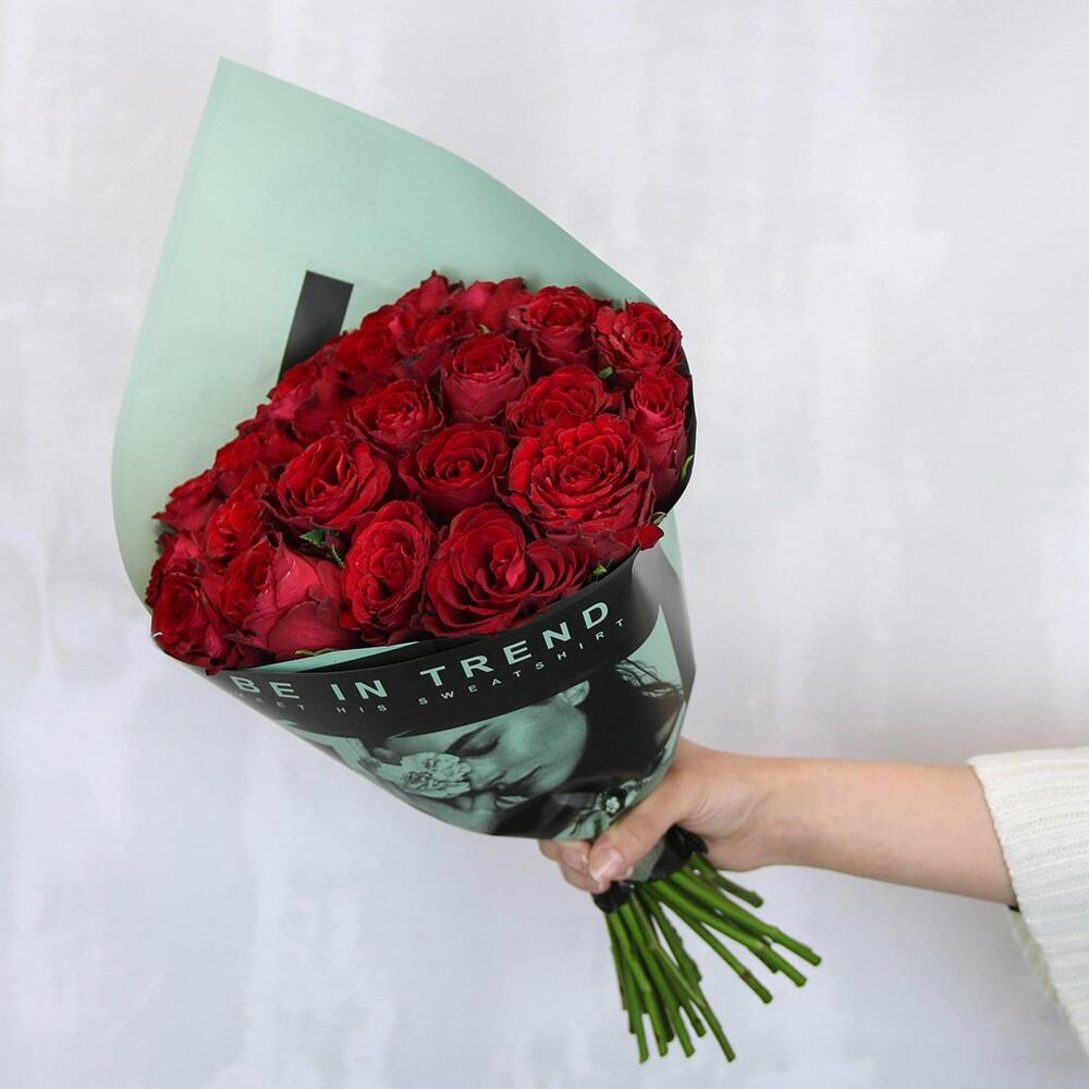 Букет экспресс из 25 красных роз 35-40 см (Кения)