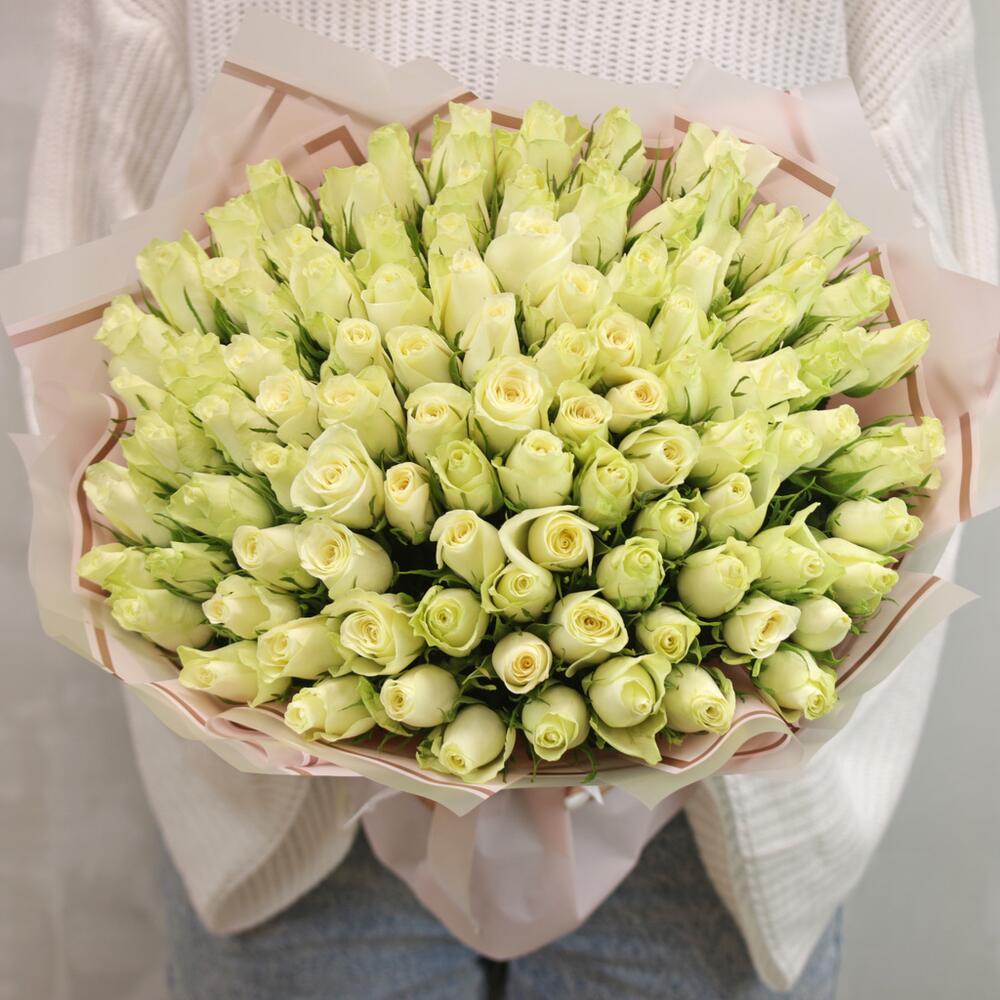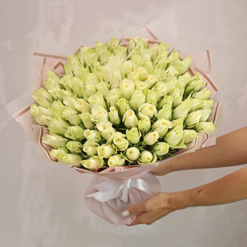 Букет из 101 белой розы 35-40 см (Кения) в стильной упаковке
