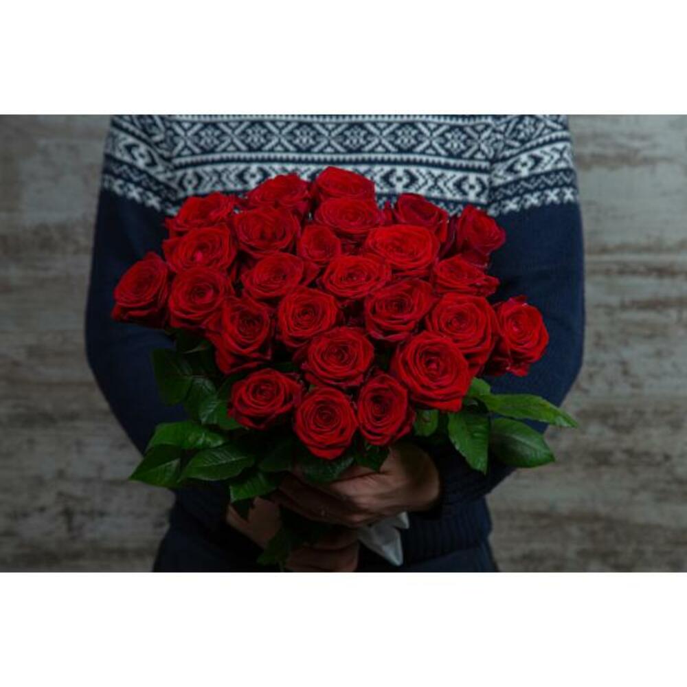 Букет из 25 красных роз Ред Наоми, длиной 60см