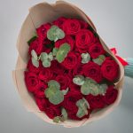 Роза красная – 25 шт.Эвкалипт – 3 шт.