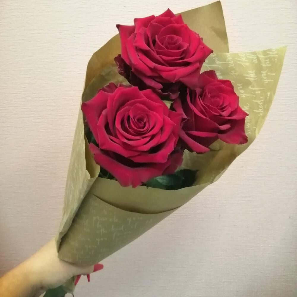 Букет из 3 эквадорских роз 60см в крафте
