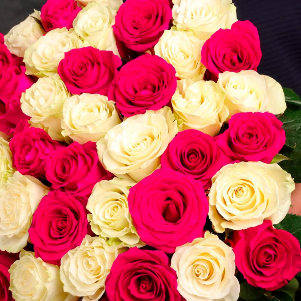 Букет 45 белых и розовых роз