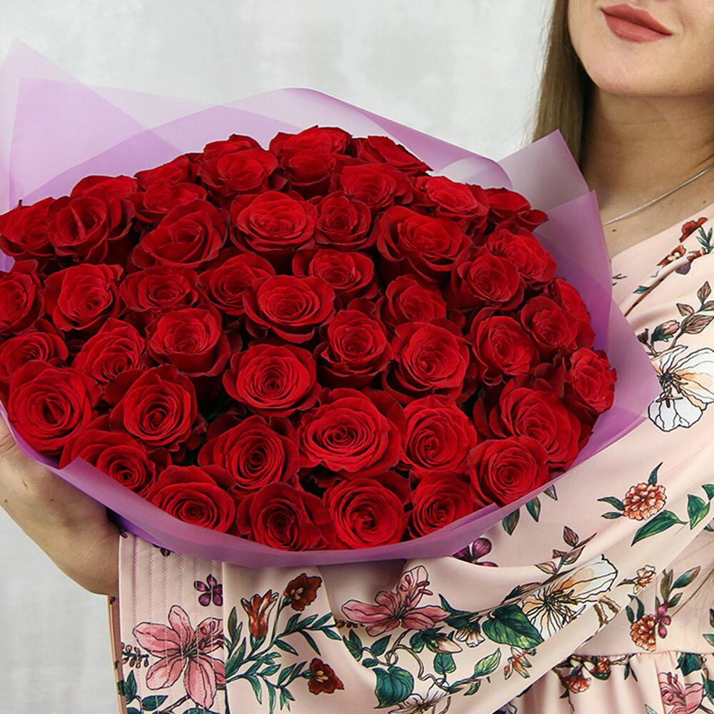Букет из 51 красной розы premium 40-50 см (Эквадор) в упаковке