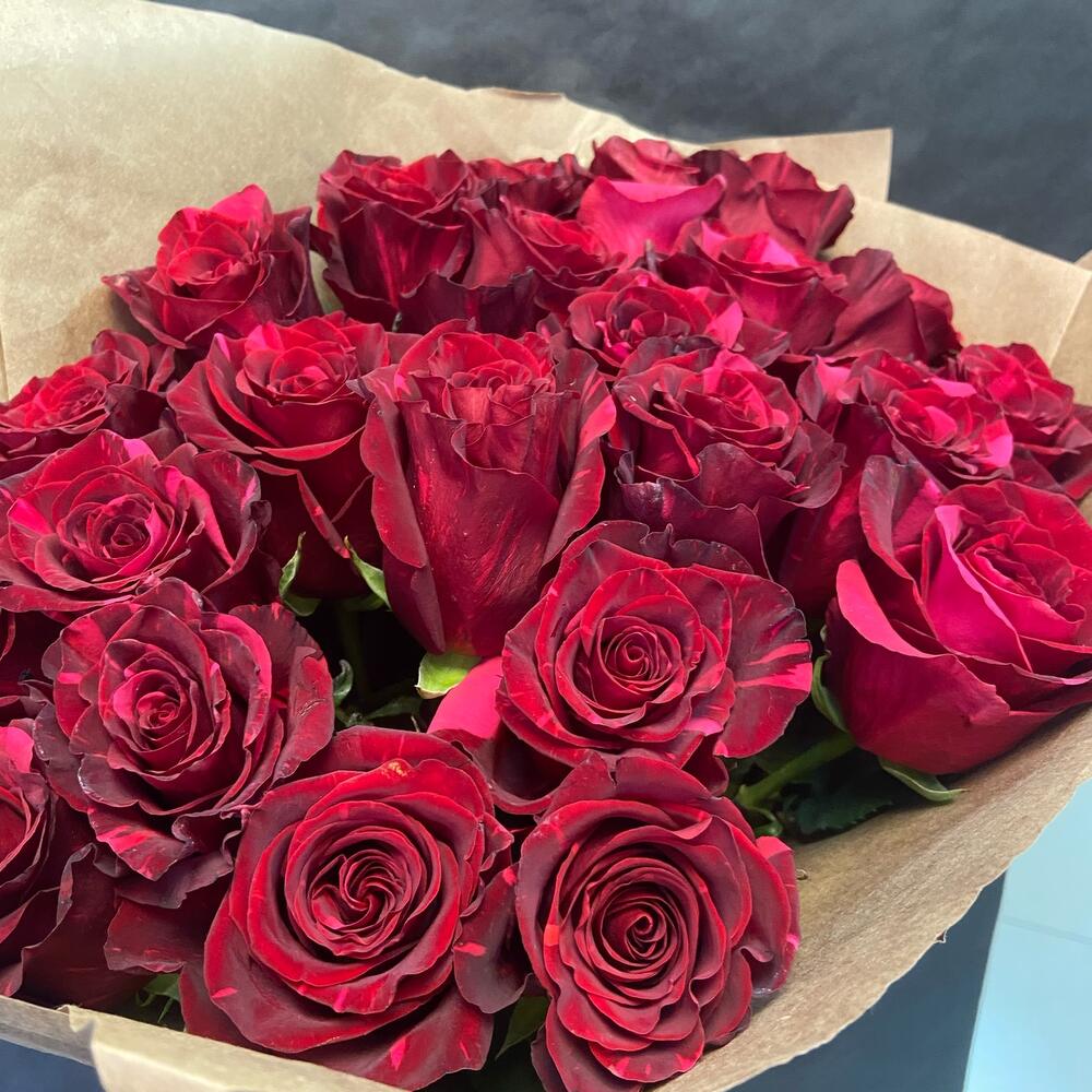Лента – 1 шт.Роза красная – 23 шт.Упаковка – 2 шт.