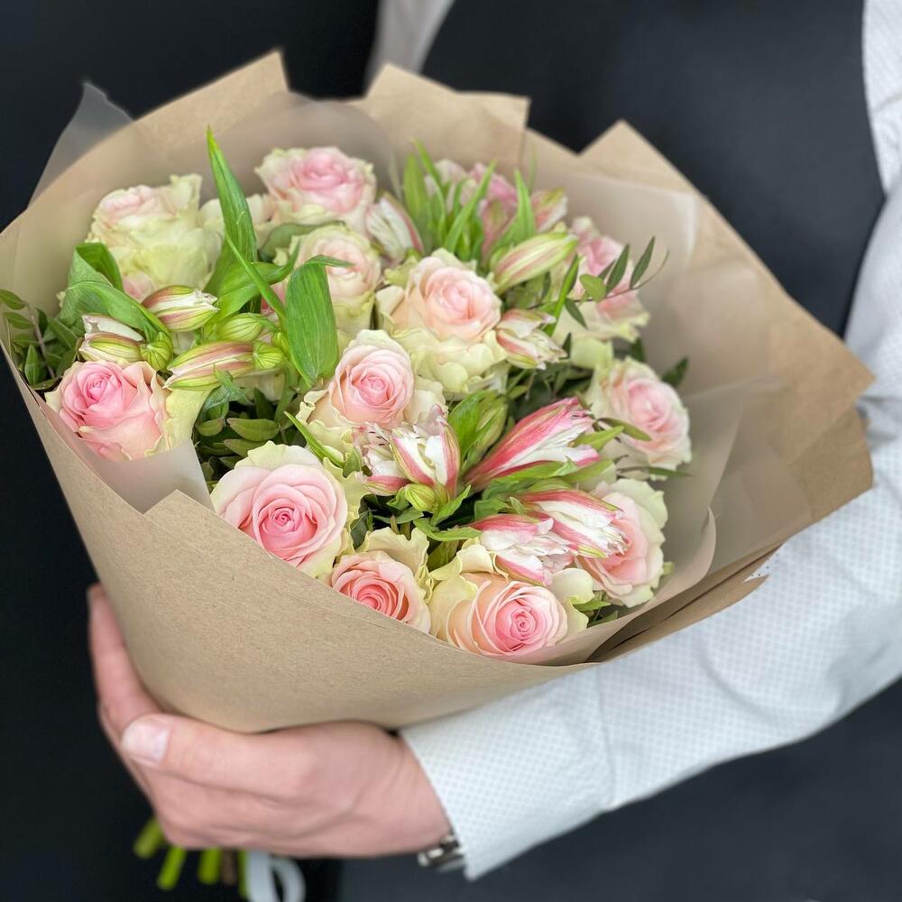 Роза – 15 шт.Альстромерия – 3 шт.Крафт – 3 шт.