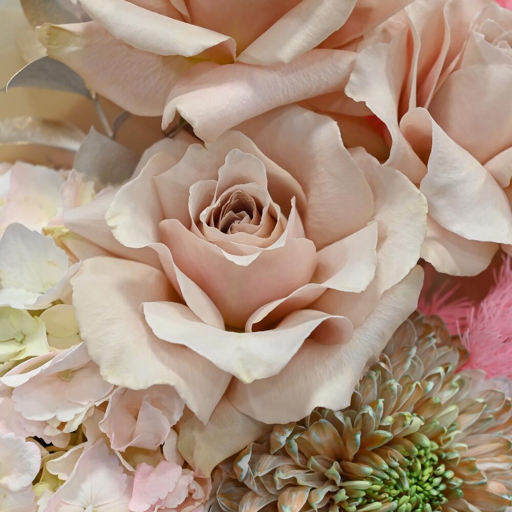 Категорий: Гвоздики, Гортензии, Кустовые розы, Пионовидные розы, Розы, Хризантемы