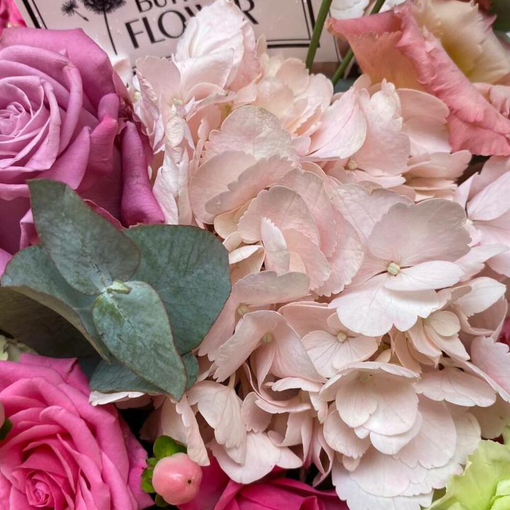 “Эвкалиптическая роскошь” гортензия и пионовидная кустовая роза