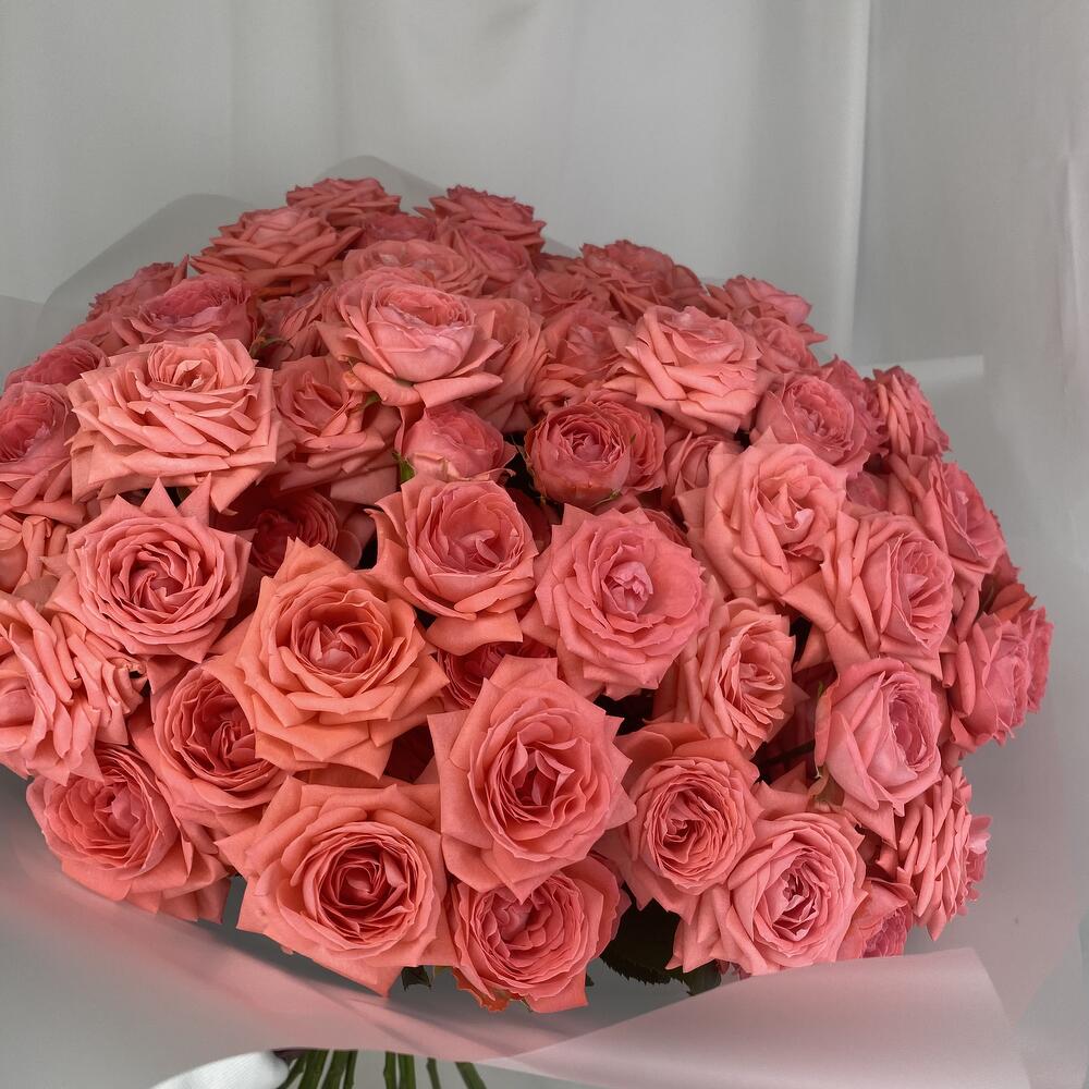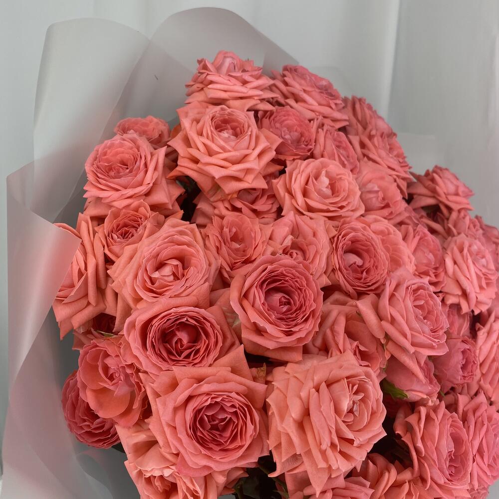 25 пионовидных розовых роз