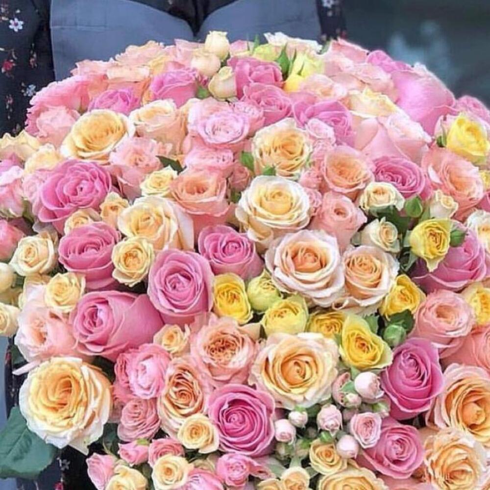 Букет из одноголовых и кустовых роз «Блаженство»