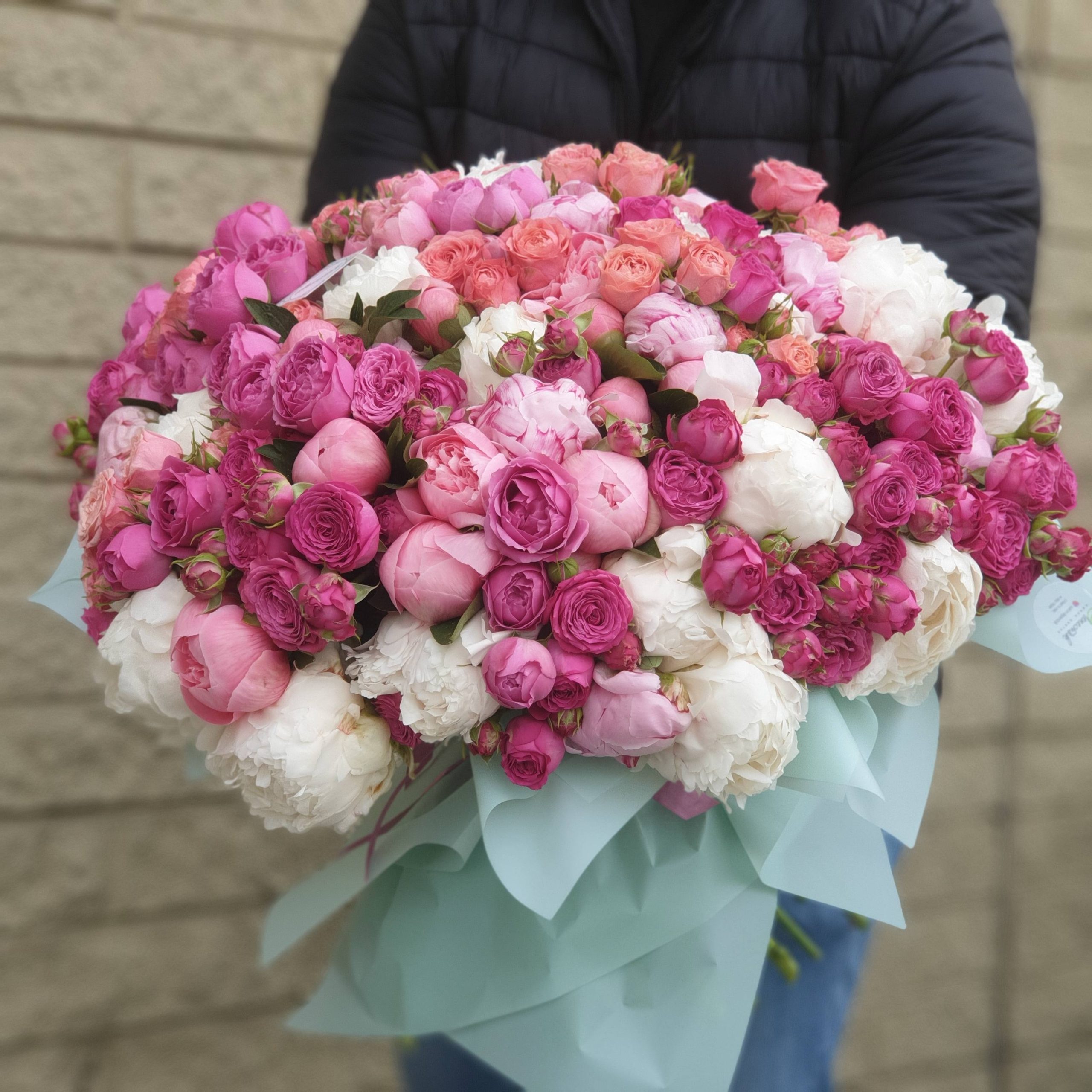 Букет из пионов и пионовидных роз ( 101 стебель)