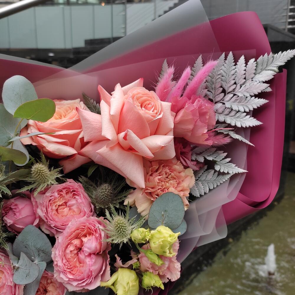 Категории: Гвоздики, Пионовидные розы, Розы, Сухоцвет