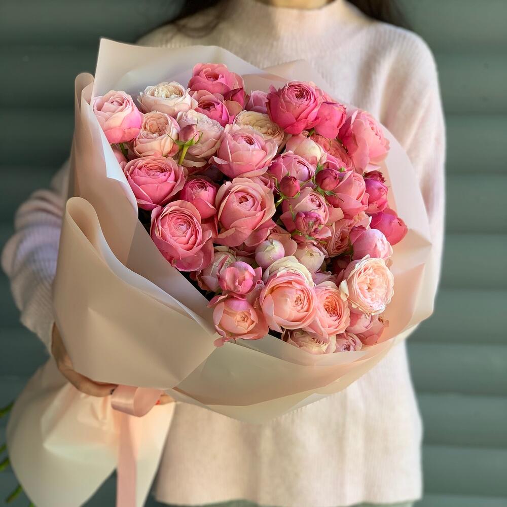 Букет из 11 пионовидных роз Пинк Мондиаль