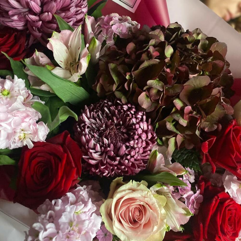 Категорий: Альстромерии, Гвоздики, Гортензии, Кустовые розы, Розы, Хризантемы