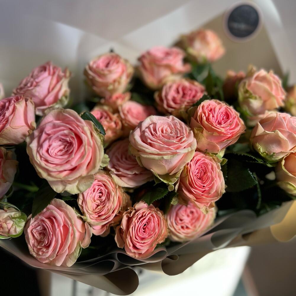 Кустовая роза – 5 шт.декоративная упаковка – 1 шт.Атласная лента – 1 шт.