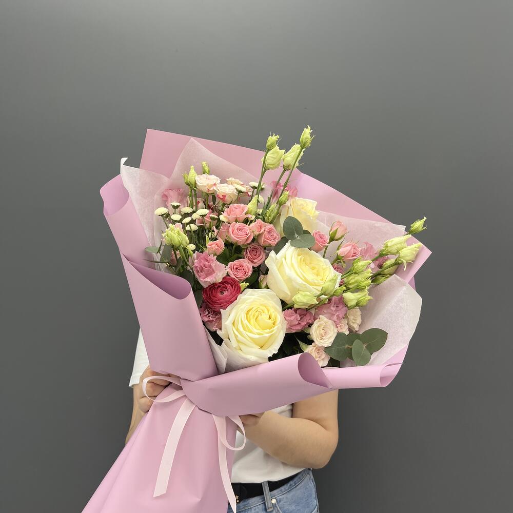 Букет из пионовидных роз Бомбастик и Мисти Баблс