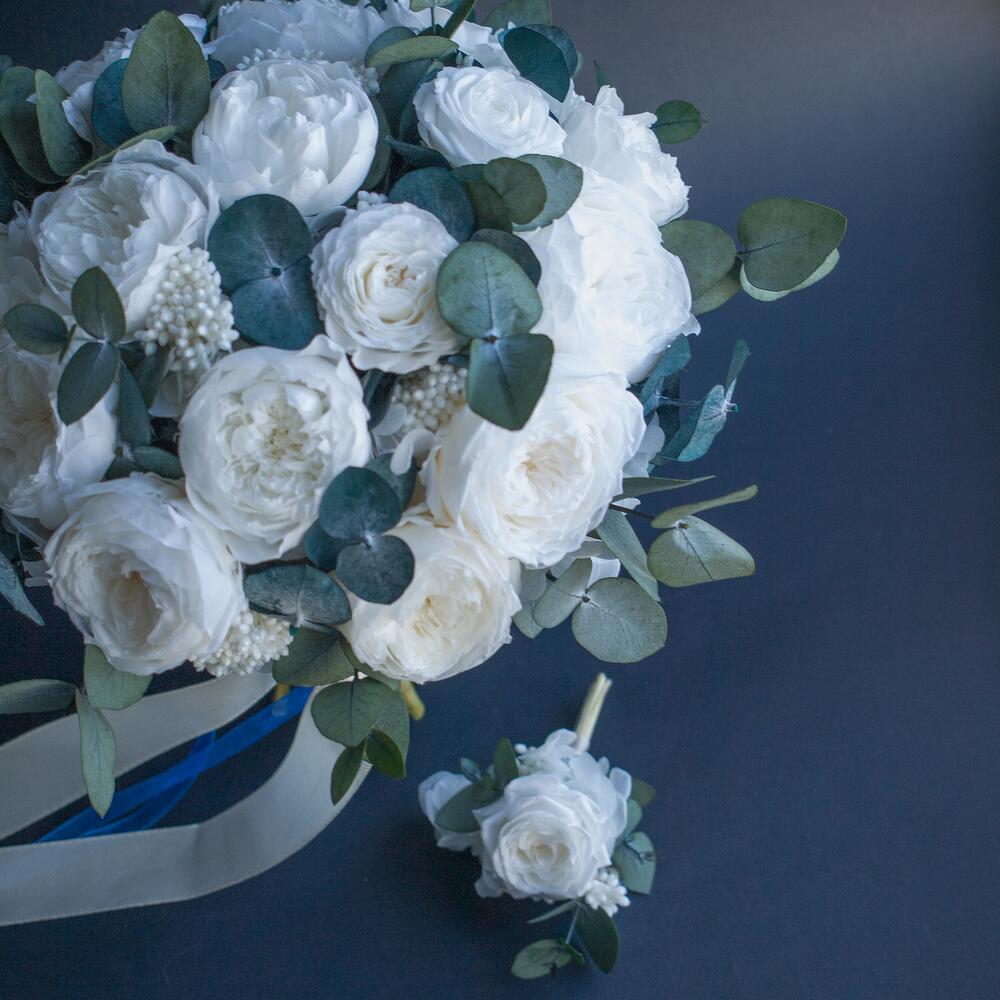 Букет невесты из стабилизированных роз и эвкалипта