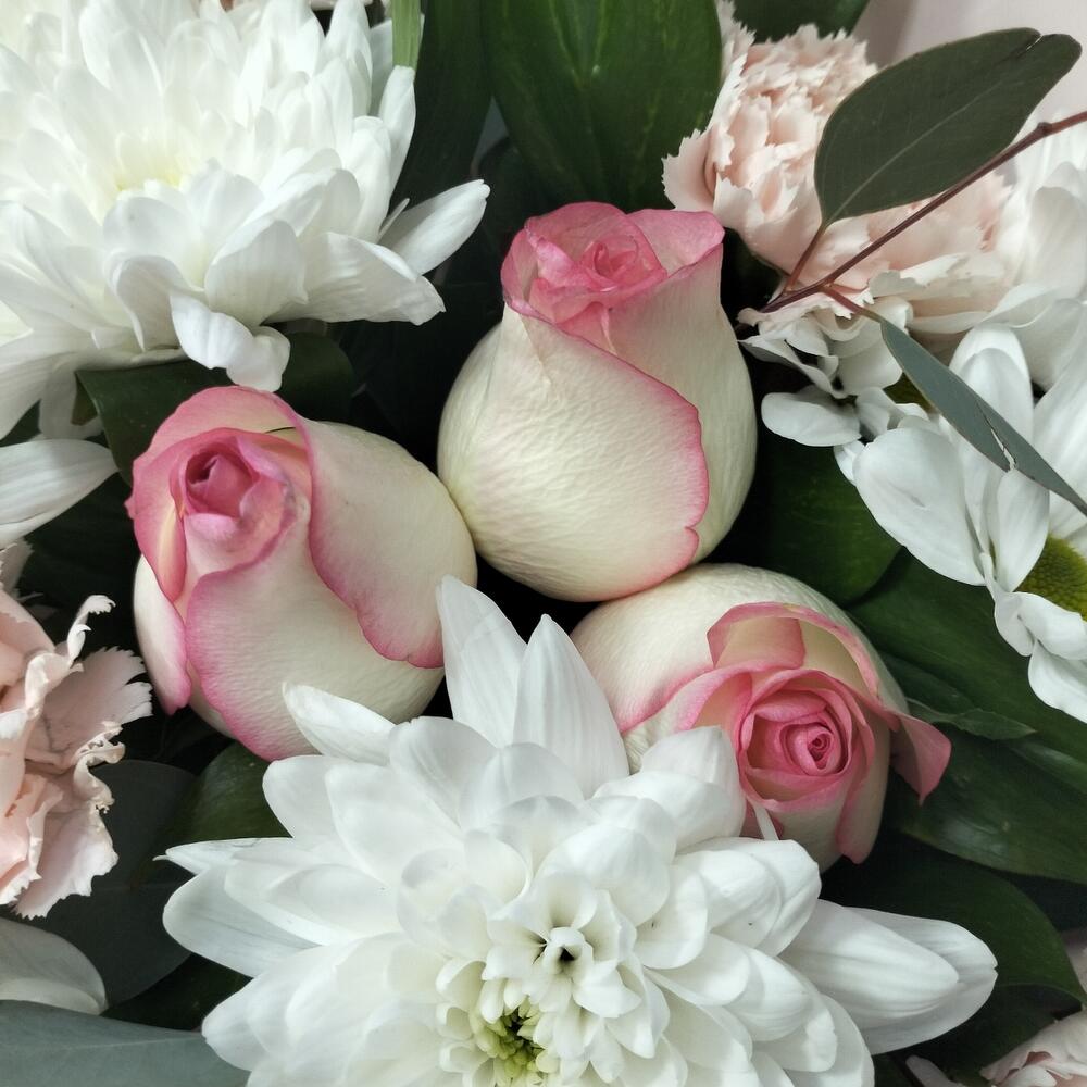 Категории: Гвоздики, Кустовые розы, Розы, Хризантемы