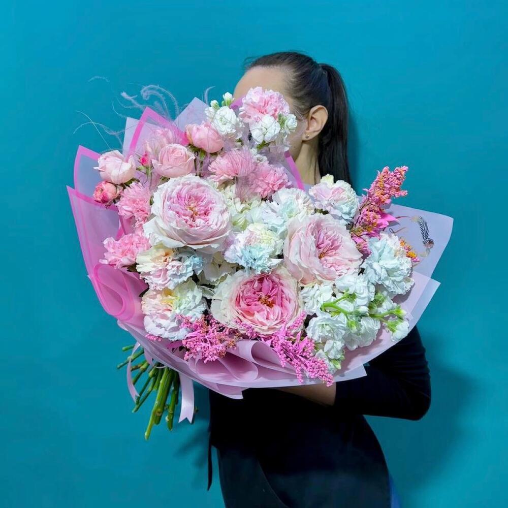 Букет нежный микс с эвкалиптом и пионовидными розами