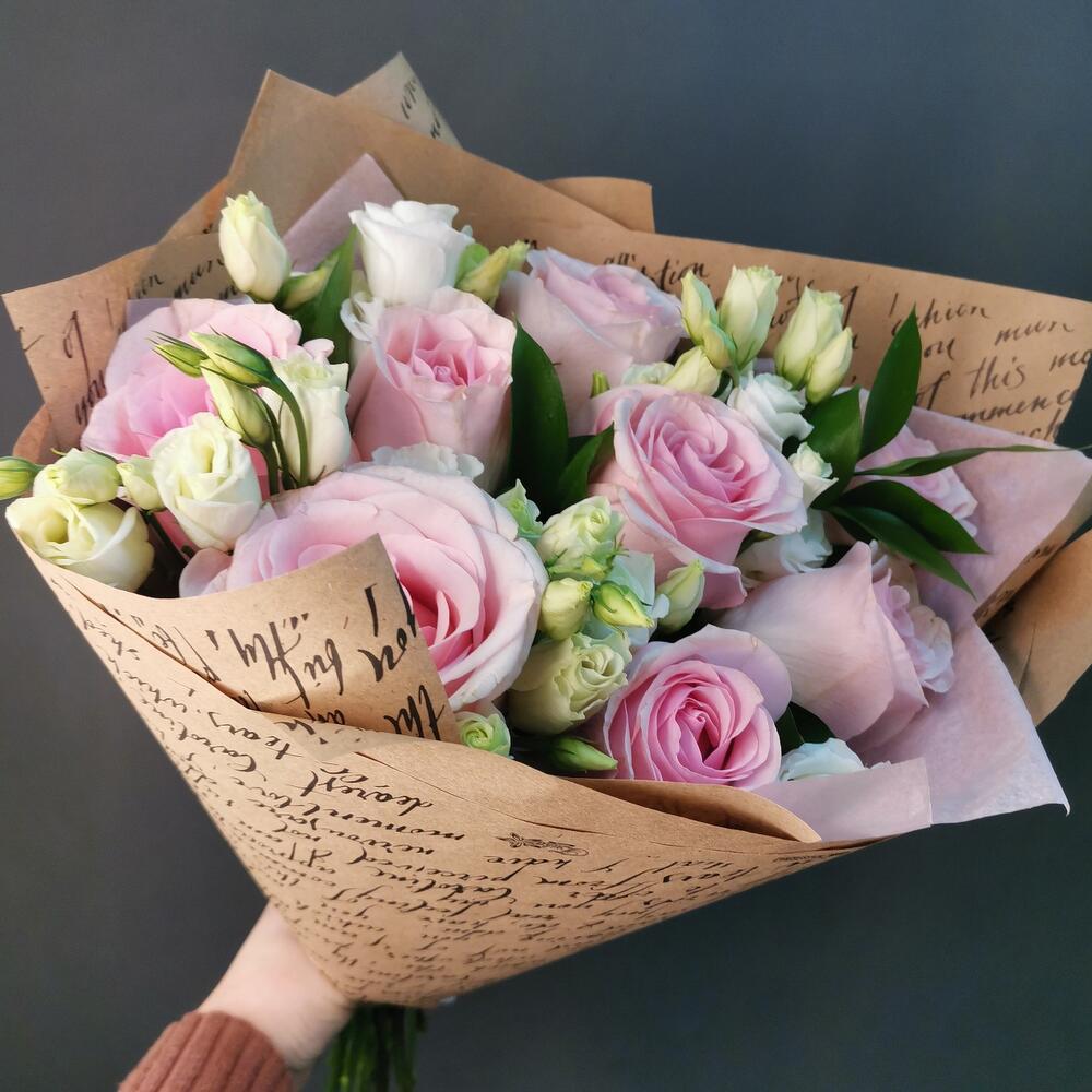 Букет роз и лизиантуса «Онегин»