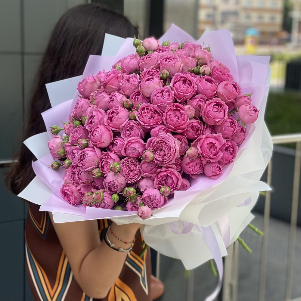 Букет из кустовых пионовидных роз в оформлении!